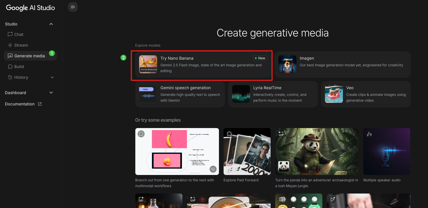 點選「Generate Media」→「Try Nano Banana」即可立即使用。